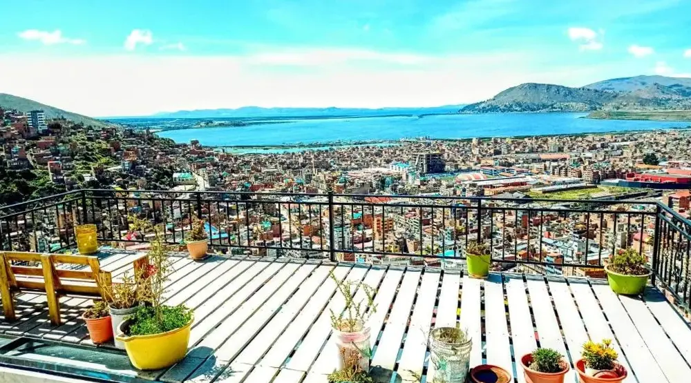 San Genaro - the good view home ofrece una estancia cómoda y acogedora ubicada en San Fransisco 471 LAS CRUCES, 21001 Puno, Perú. El alojamiento cuenta con baño privado, ducha, escritorio, TV de pantalla plana, almacenamiento de equipaje y lavadero. Los huéspedes pueden disfrutar de vistas panorámicas desde su habitación. Cerca del establecimiento se encuentran lugares interesantes como Museo Carlos Dreyer a 900 metros, Conde del balcón de Lemos también a 900 metros y Pan Brown a solo 300 metros. Además, hay opciones para transporte al aeropuerto internacional Inca Manco Cápac situado a 41 kilómetros y otros puntos turísticos cercanos como Plaza de Armas a 900 metros o Bahia de los Incas Boardwalk a 1.7 kilómetros.